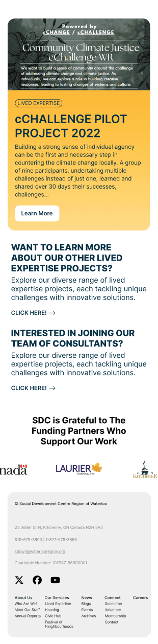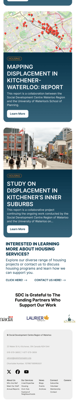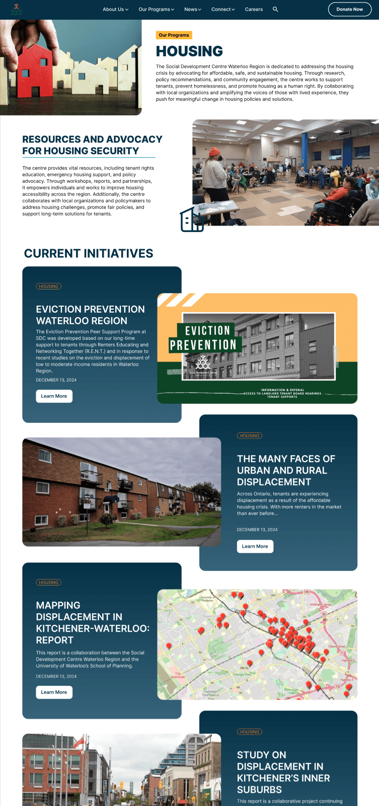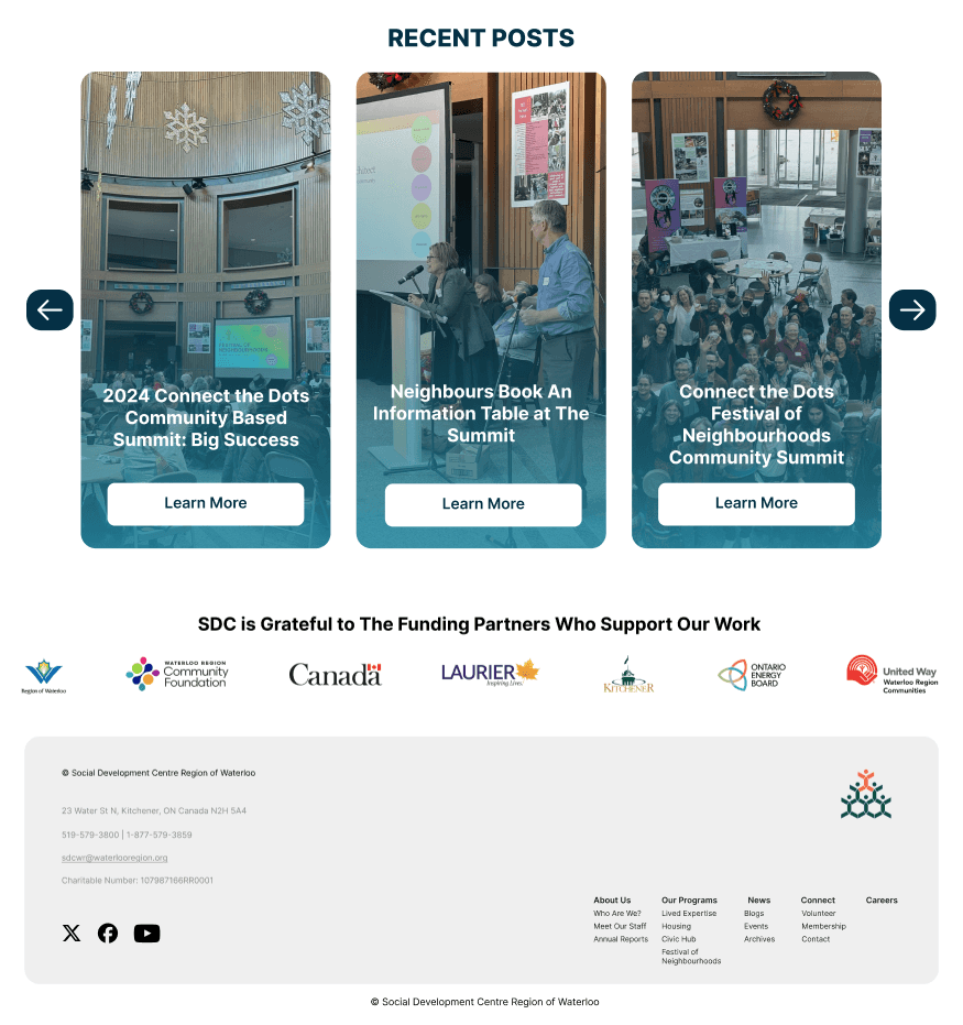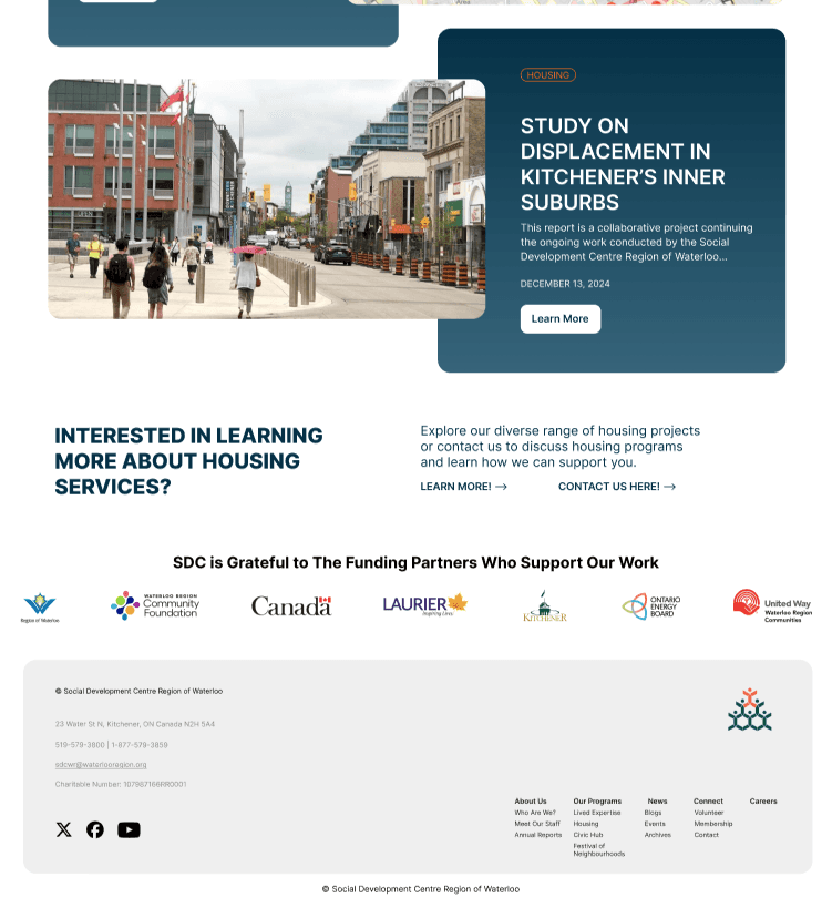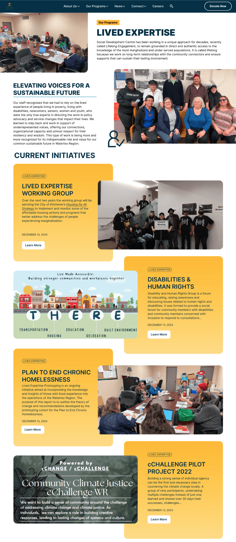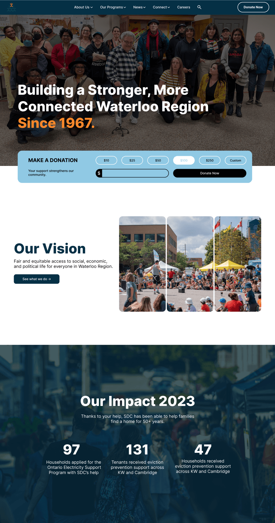Research highlighted that users struggled to understand SDC’s goals and offerings. We designed a landing page that foregrounds the organization’s mission and community impact, telling their story more effectively as soon as users land on the site.